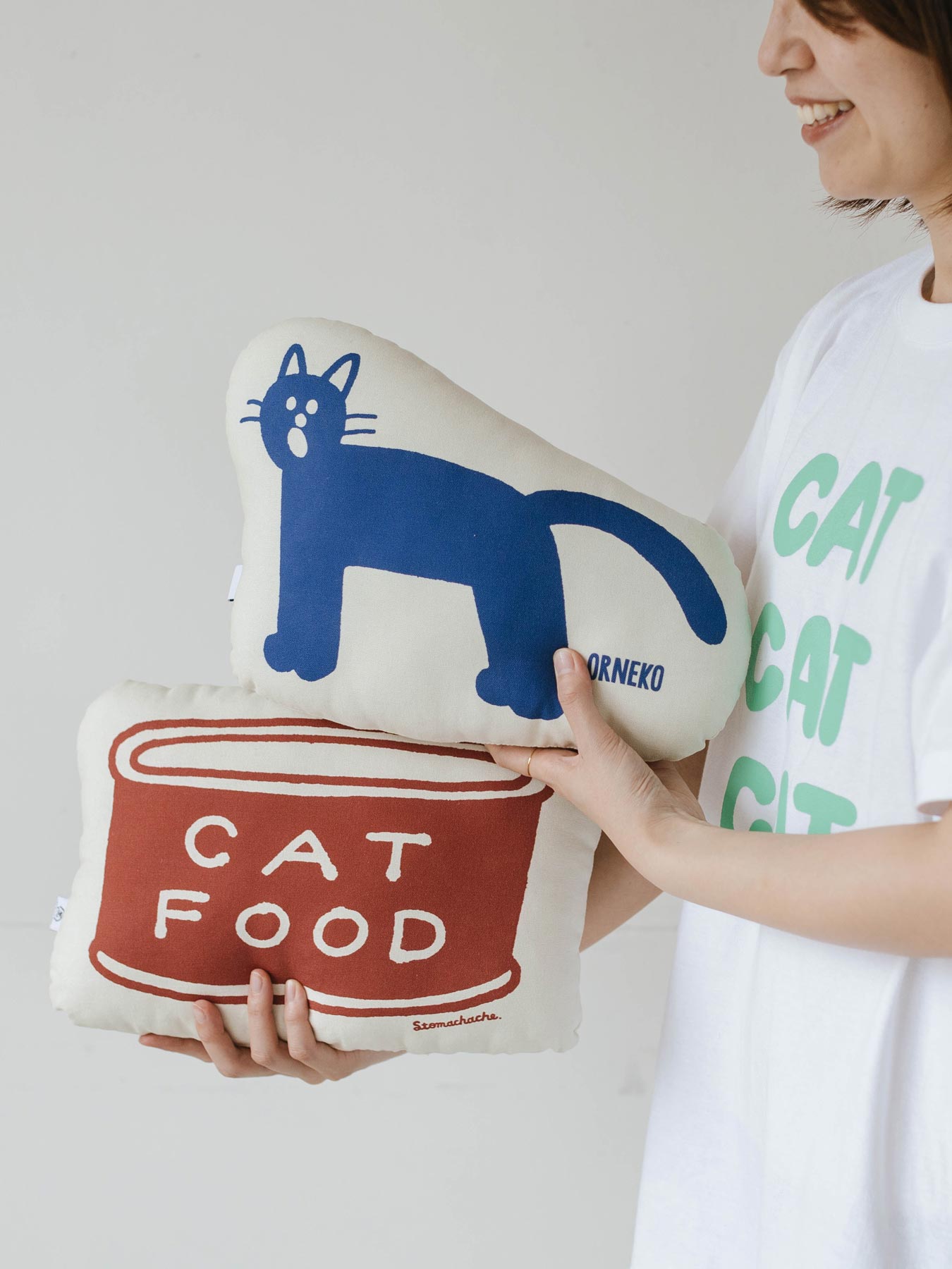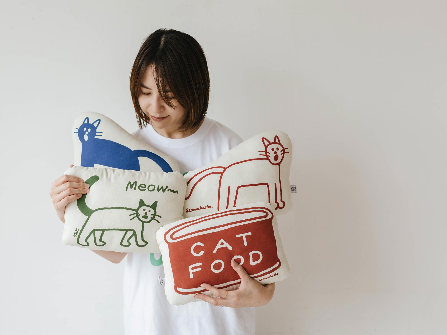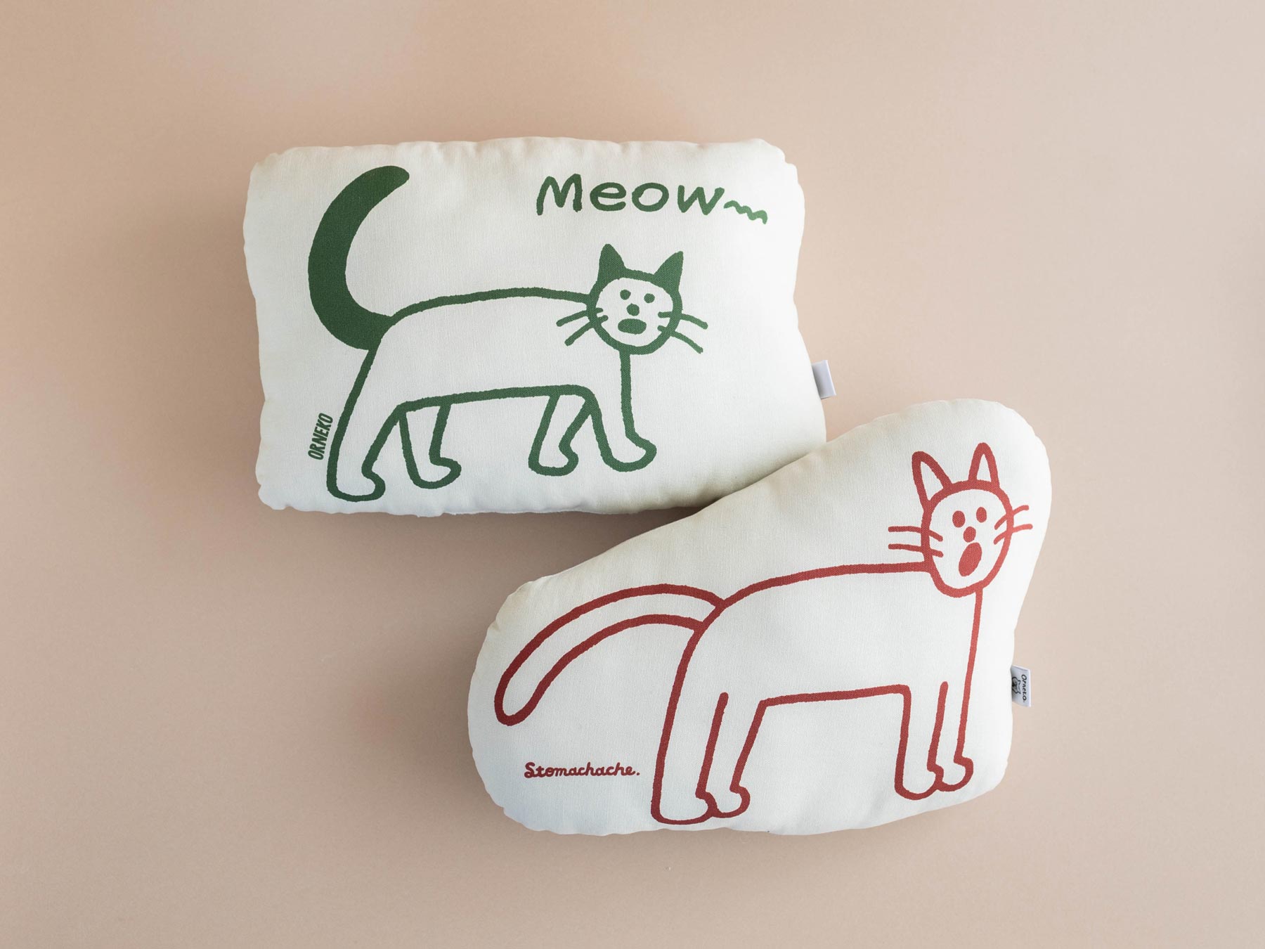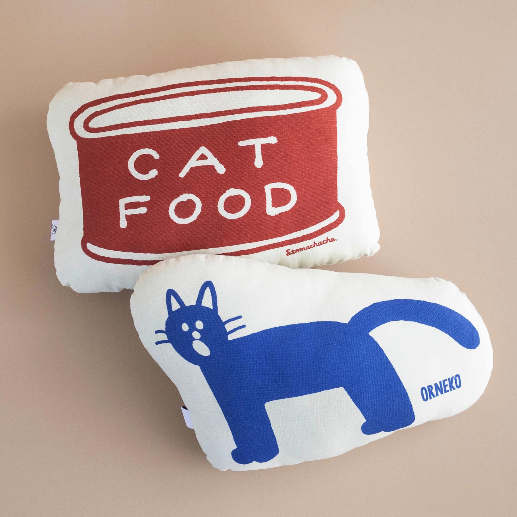 人気イラストレーターSTOMACHACHE. 描き下ろしのアートワークをプリントした、オルネコオリジナルのミニクッションです。