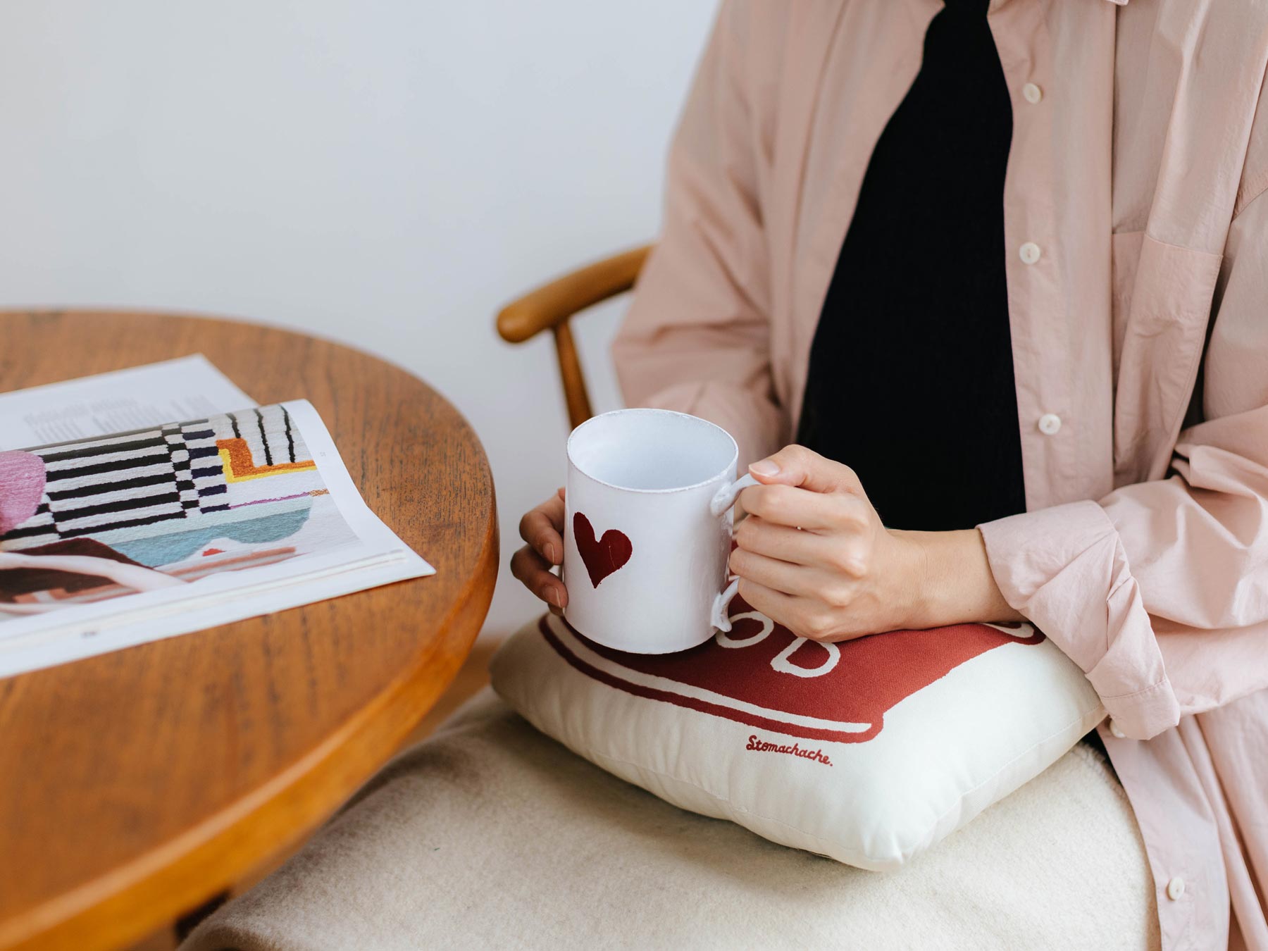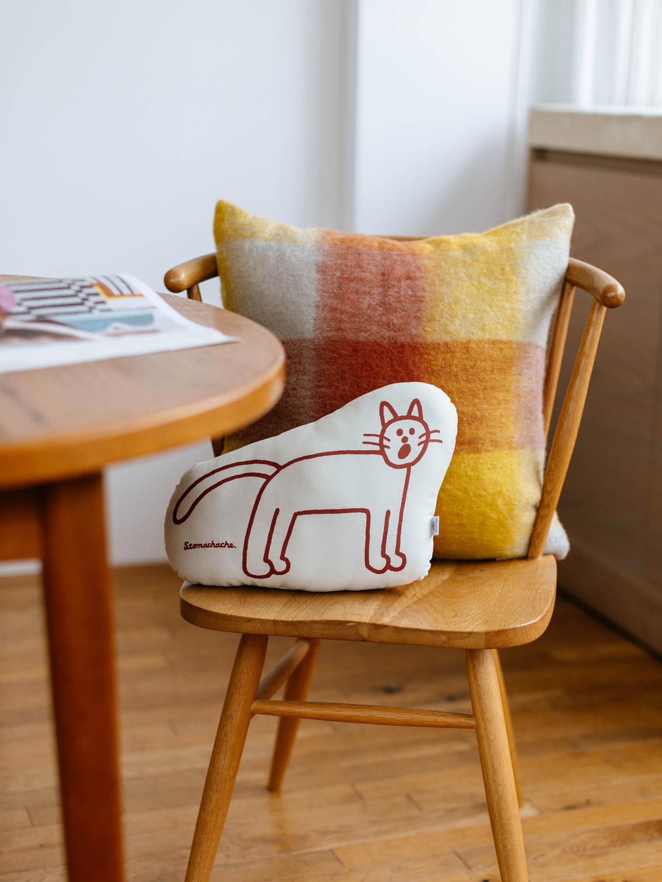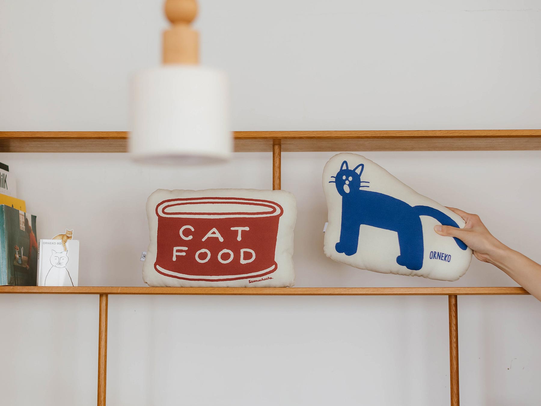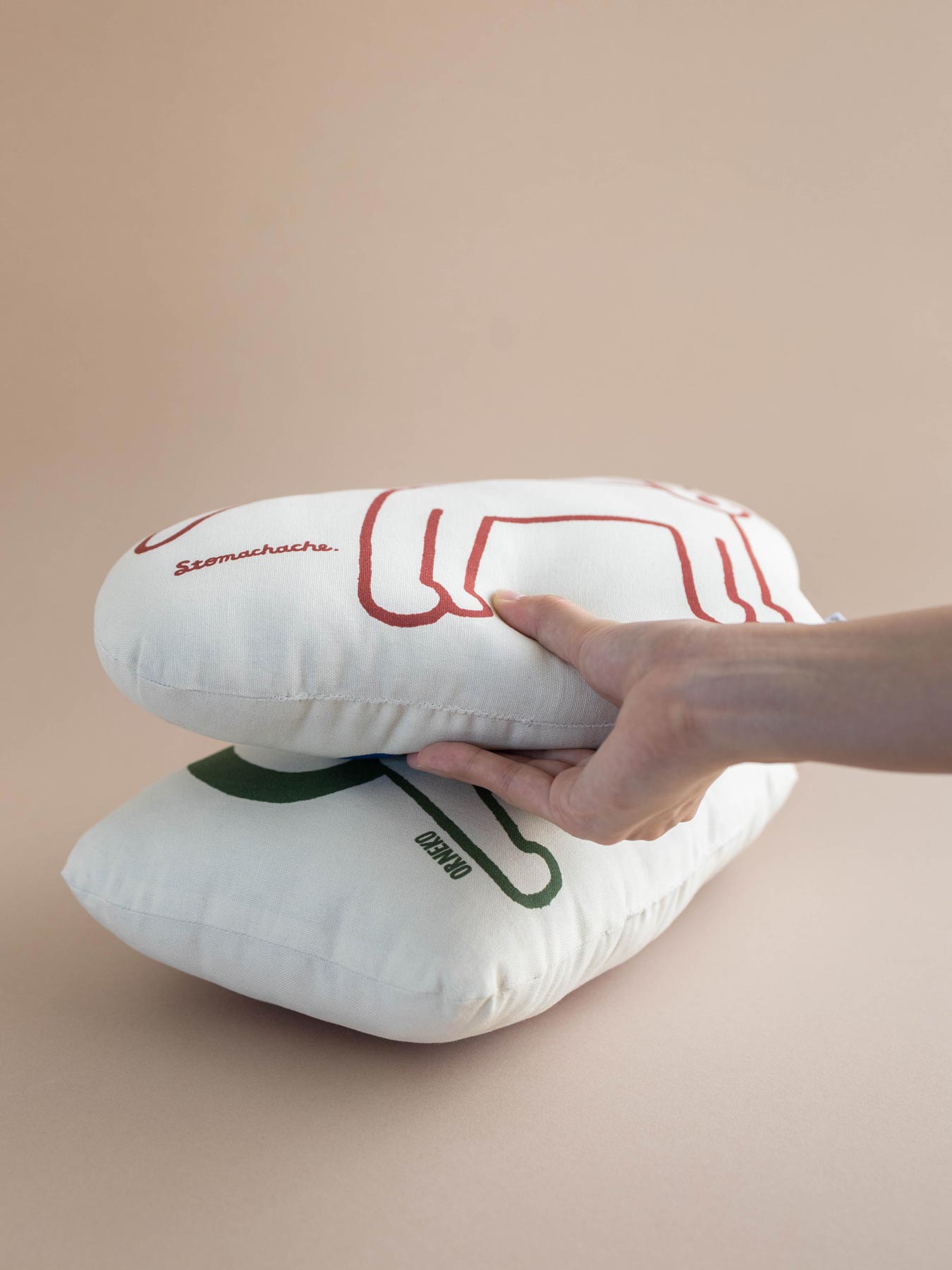 人気イラストレーターSTOMACHACHE. 描き下ろしのアートワークをプリントした、オルネコオリジナルのミニクッションです。