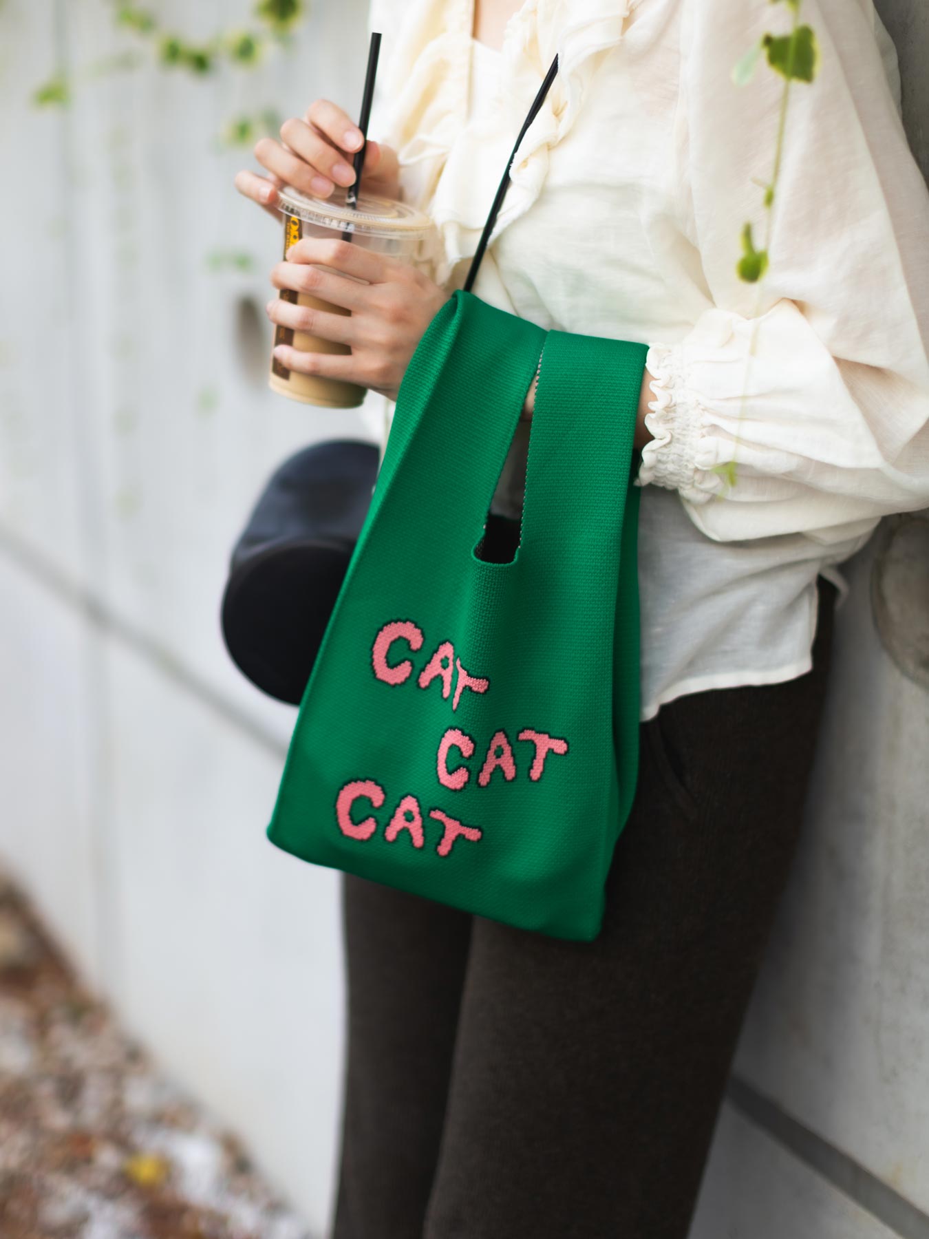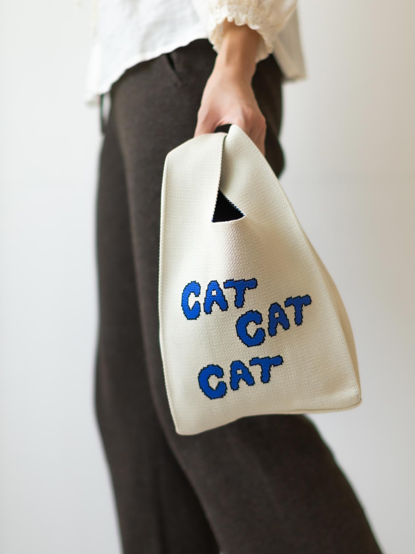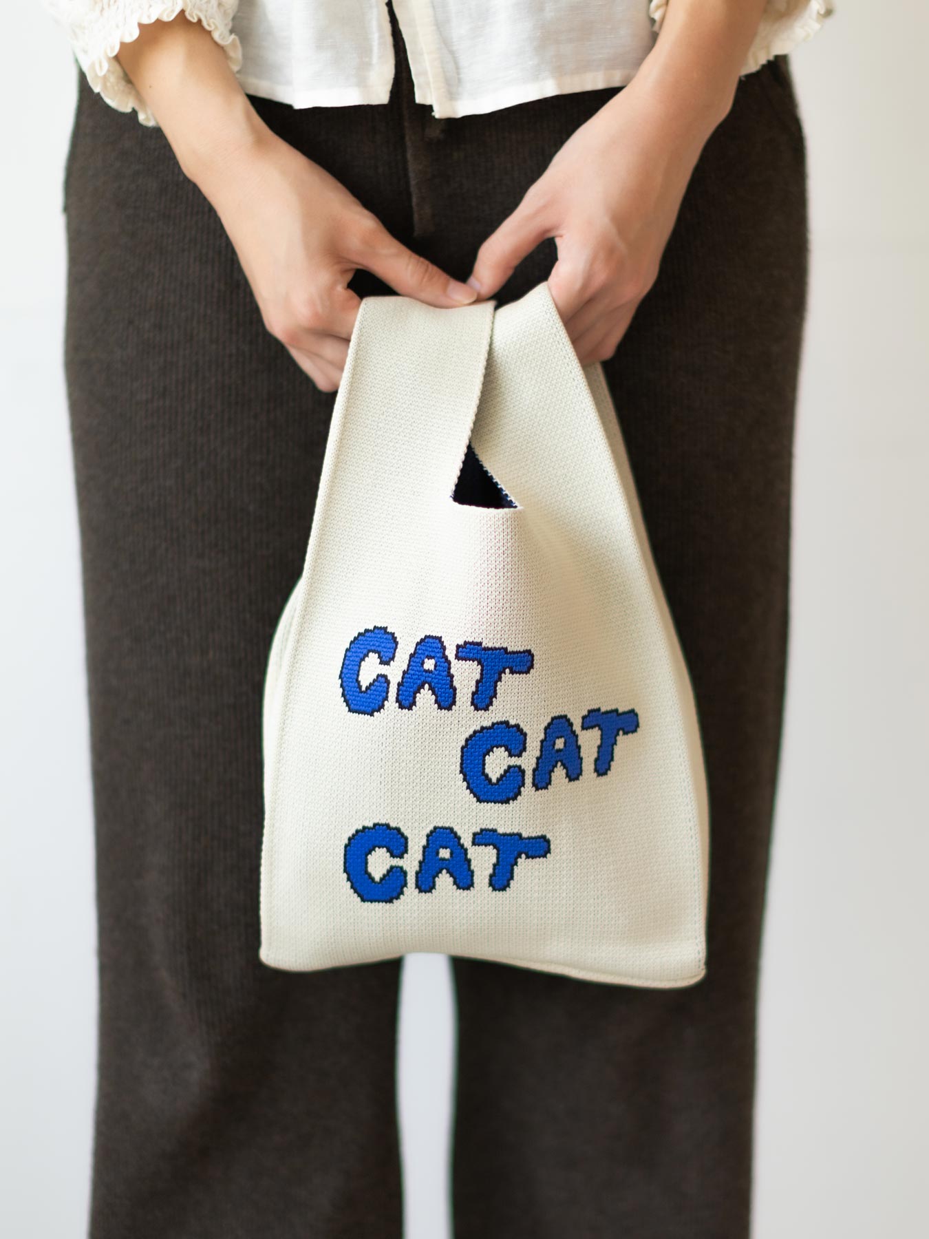 クッションやマグでも登場している、スタッフの間でもイチオシのおとぼけ顔のネコを表面に採用しました。裏面にはCAT CAT CATの文字だけを配し、表裏で違う雰囲気を楽しめます。