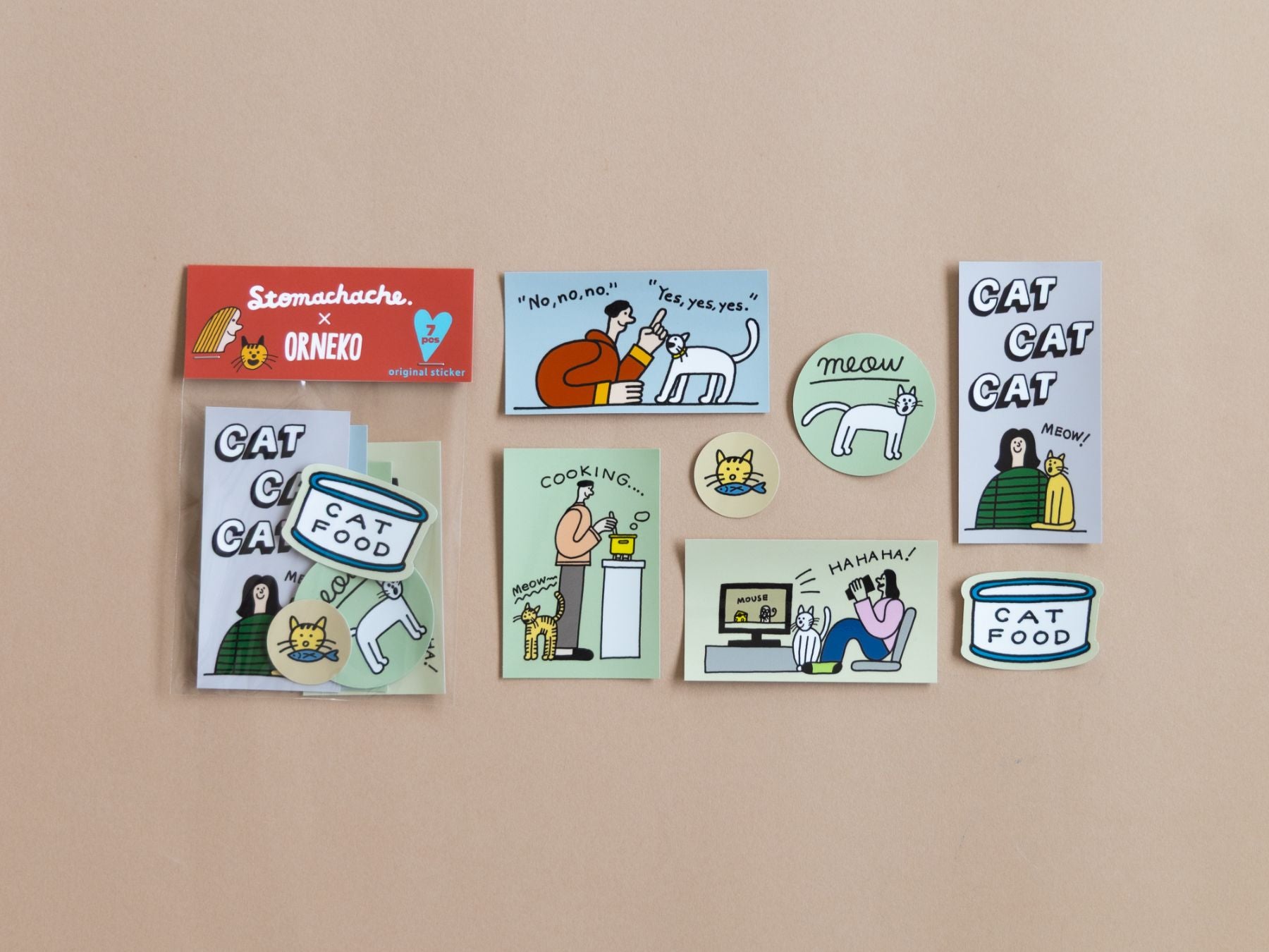 人気イラストレーター・STOMACHACHE. 描き下ろしのアートワークをあしらった、オルネコオリジナルステッカーのパックです。