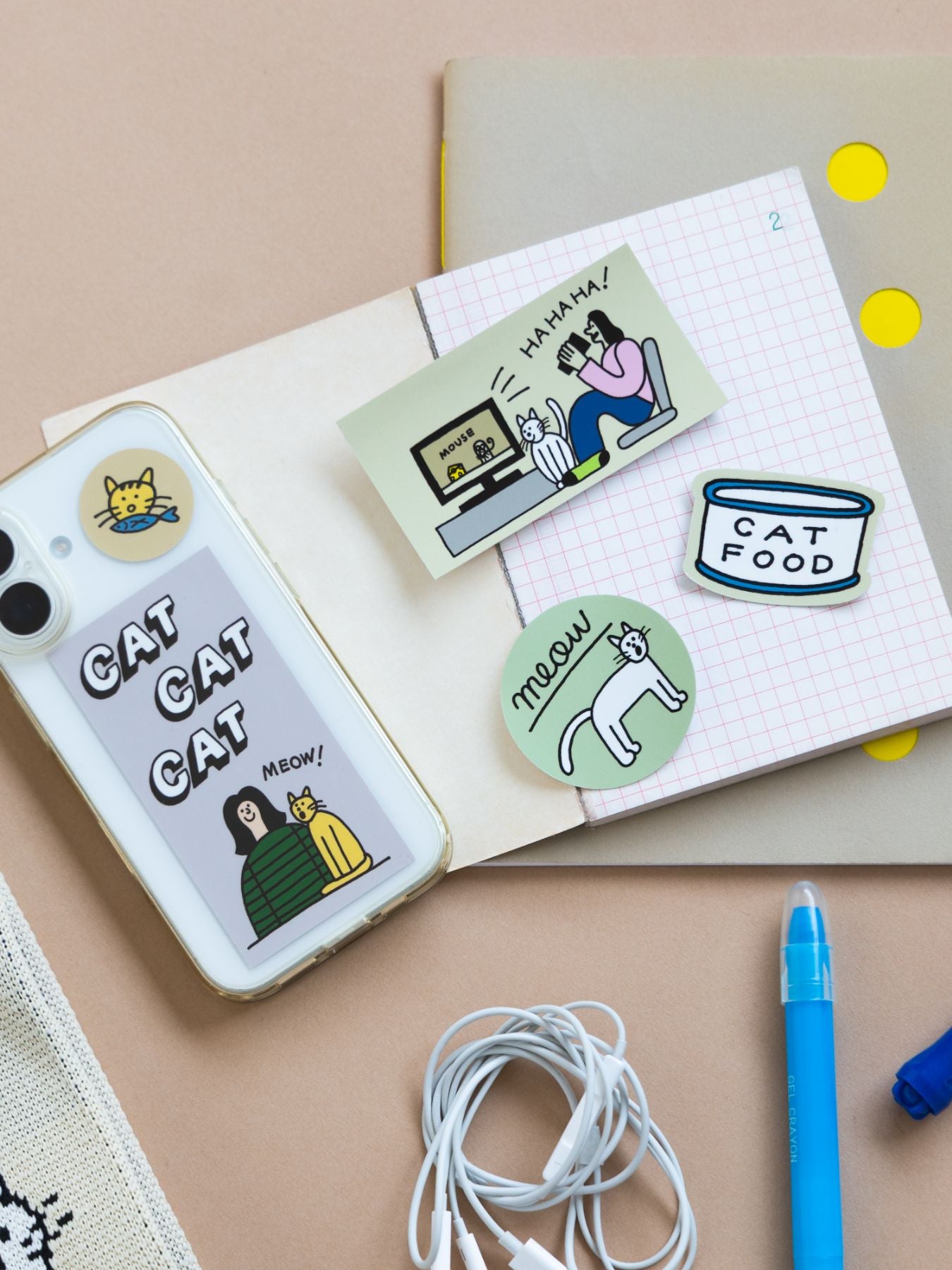 今回のスペシャルアートワークをぜひ手軽に楽しんで欲しい!という思いから、ネコとの暮らしを感じられるアートワークを厳選し、7枚のステッカーに。