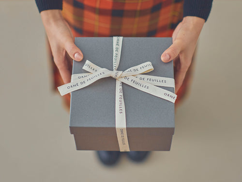 ギフトラッピングはカートに追加してご購入ください。ボックスと巾着の2種類をご用意しております。
