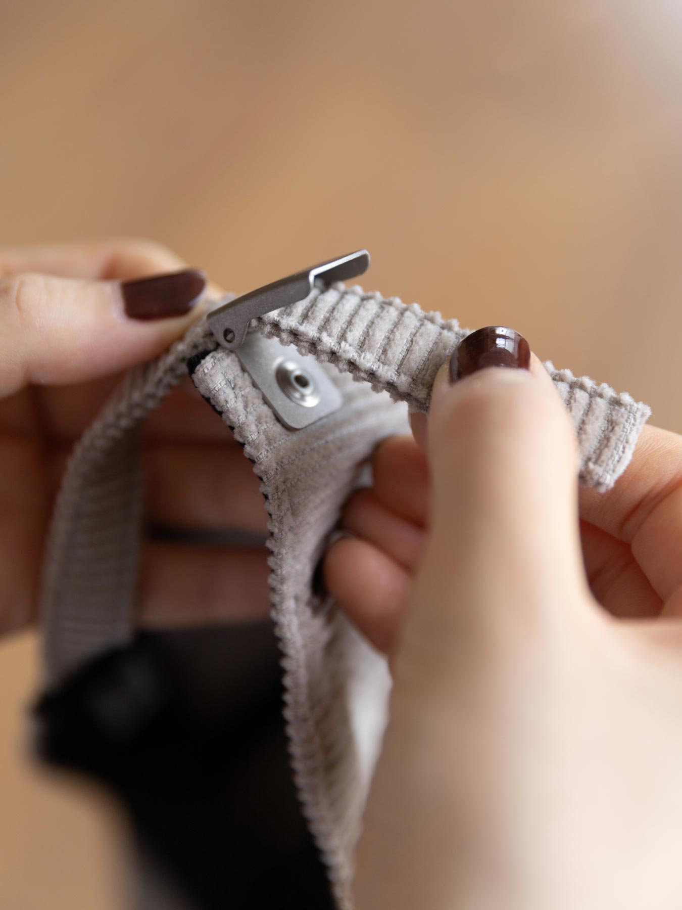 余ったベルト先は穴に差し込んで、スベリの裏側に隠すことができます。