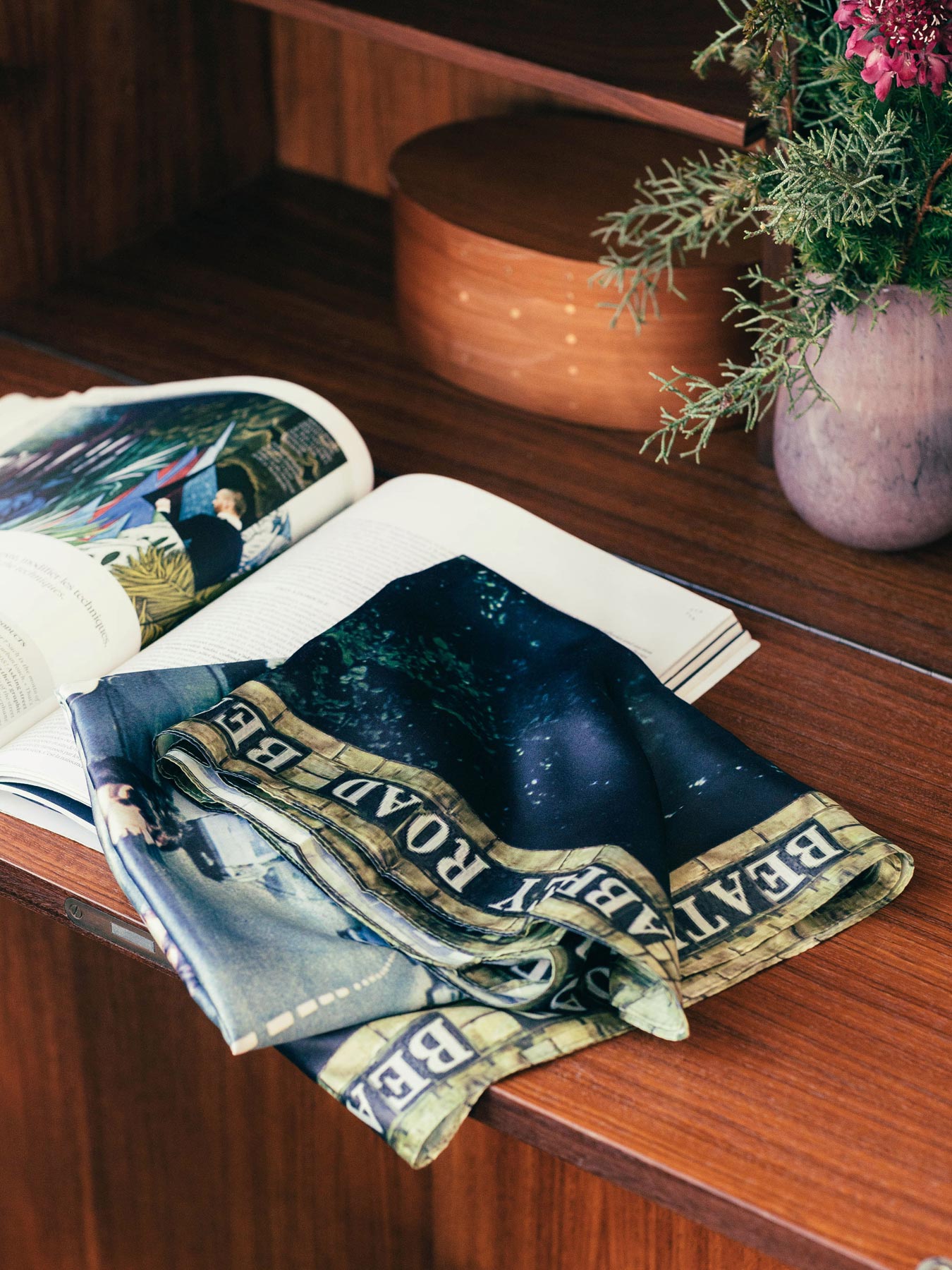 ビートルズの名盤『Abbey Road(アビイ・ロード)』のアートワークをプリントした大判のスクエアスカーフ。イギリスから仕入れました。