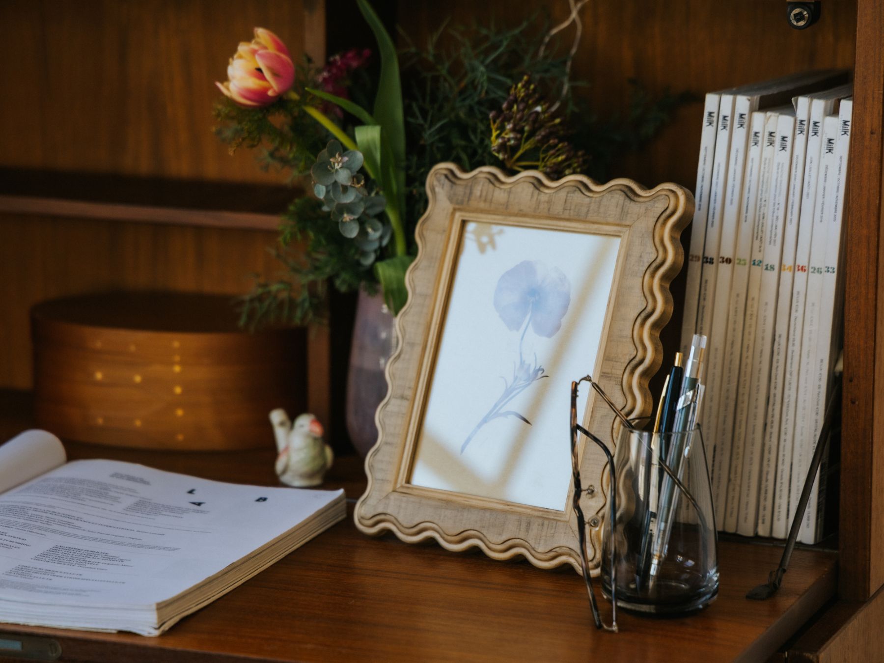 ポストカードなどを収められる、大きすぎず小さすぎないサイズ感で、インテリアにも取り入れやすく、並べて飾るのもおすすめ。